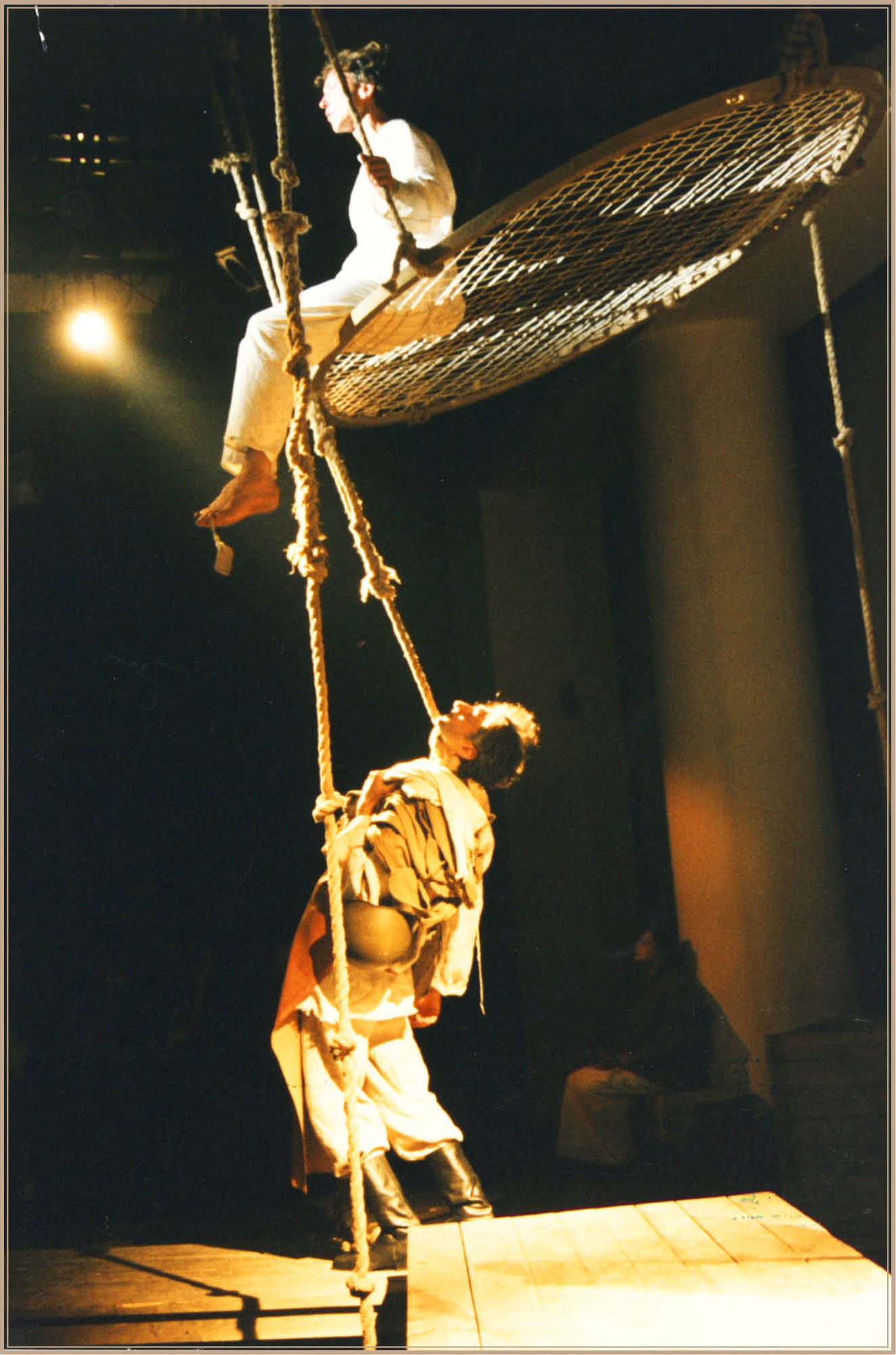 Сцена из спектакля «Одна абсолютно счастливая деревня». 2000г. Фотограф М. Гутерман. Фотография из фонда РГБИ.